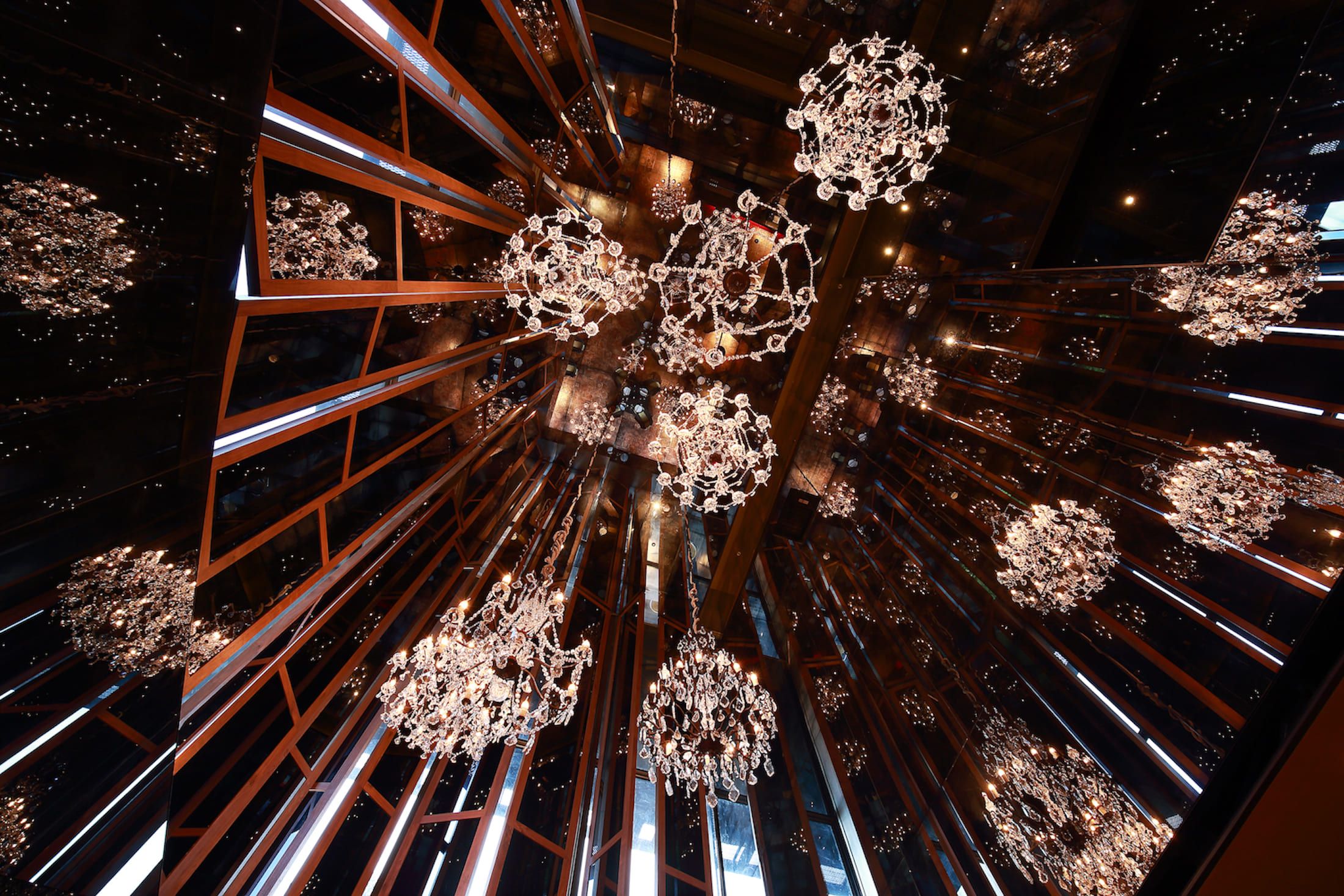 大廳牆面覆以歐洲百年古堡手工浮雕黑鐵片,驢子餐廳內則有八盞奧地利水晶燈與鏡面交錯反射,折射出萬千光影。在義大利仿舊巧拚磚鋪陳足下的肌理,營造出懷舊與華麗並存的氛圍。