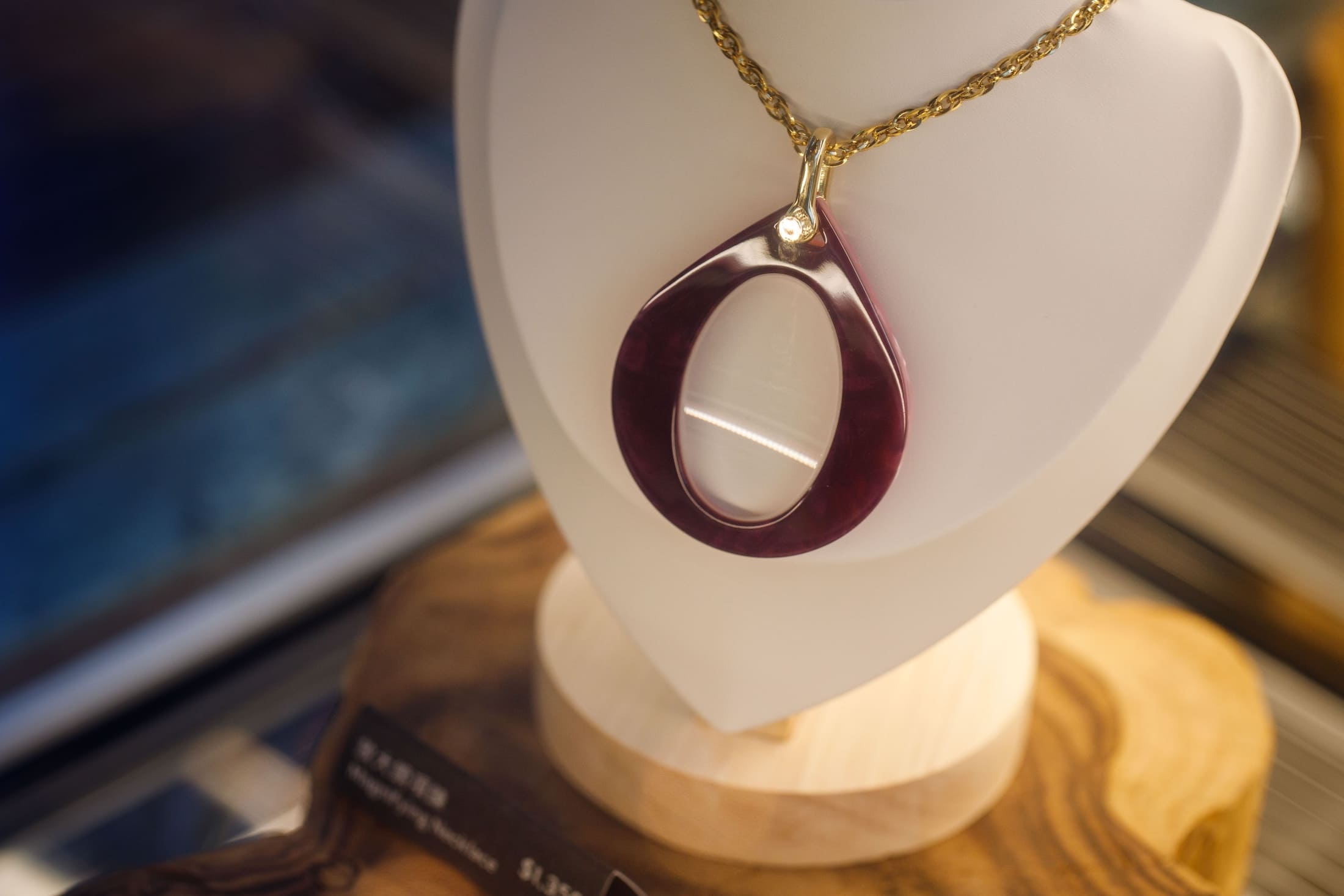 典雅與功能兼具的項鏈,中間鑲崁放大鏡片,讓您有需要時,優雅從容的看清每個細節。